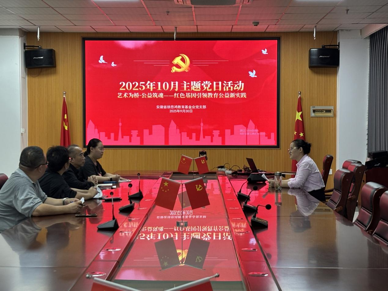 为庆祝中华人民共和国成立76周年,深入学习贯彻习近平新时代中国特色社会主义思想,推动党建工作与艺术教育公益事业深度融合.9月30日下午,安徽省徐悲鸿教育基金会党支部组织全体党员开展“艺术为桥·公益筑魂——红色基因引领教育公益新实践”主题党日活动,以实际行动为祖国华诞献礼。